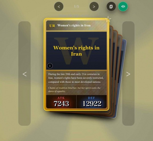 Каждая карточка в игре обладает двумя характеристиками: показателем атаки и показателем защиты. Первый основывается на популярности статьи и рассчитывается как количество просмотров страницы, умноженное на множитель редкости. Второй отражает глубину материала и представляет собой длину контента, также умноженную на множитель редкости.