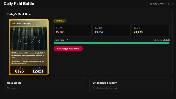 На данный момент в игре доступны три режима сражений. Ежедневный рейд предполагает бой с одним "рейд-боссом" в день с использованием до 10 карточек из коллекции игрока. Одиночные случайные сражения и командные бои позволяют сразиться с реальными противниками в формате карточка на карточку или пять на пять соответственно. Режим сюжетной кампании анонсирован, но пока находится в разработке.