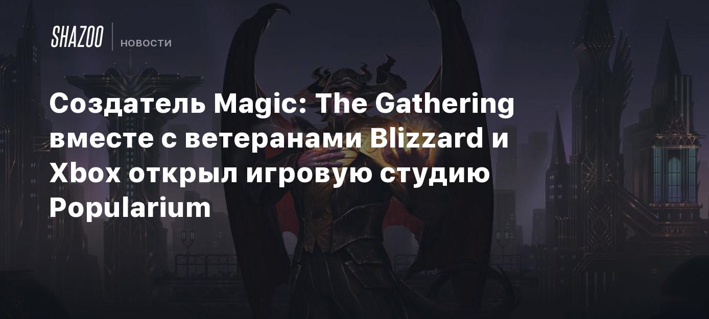 Ричард Гарлфид, создатель карточной игры Magic: The Gathering, сообщил об открытии собственной игровой студии под названием Popularium. К нему примкнули бывшие сотрудники Blizzard и Xbox, приложившие руку к Hearthstone, World of Warcraft, Xbox Live.