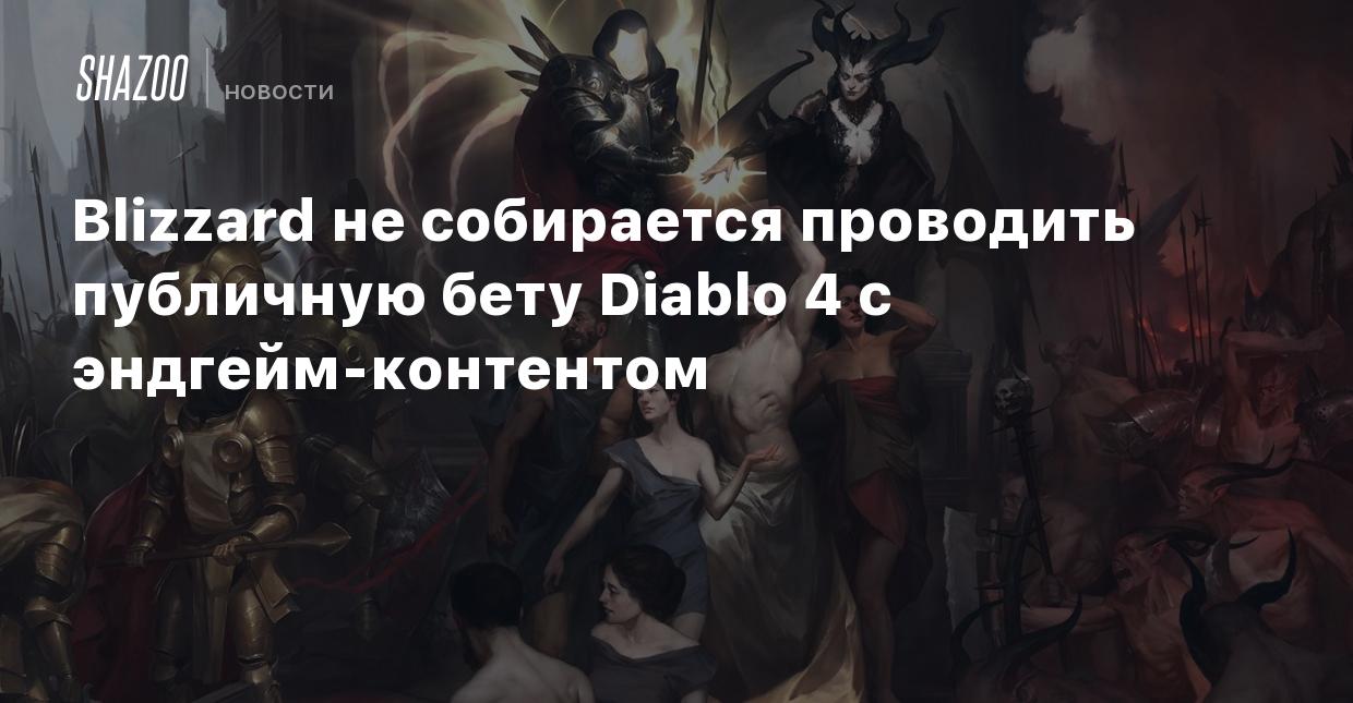 Помощник геймдиректора Diablo IV Джо Пьепиора в разговоре с PCGamesN подтвердил, что Blizzard не планирует устраивать публичное бета-тестирование игры с упором на эндгейм-контент. Подобная закрытая бета проводилась для узкого круга лиц в ноябре.