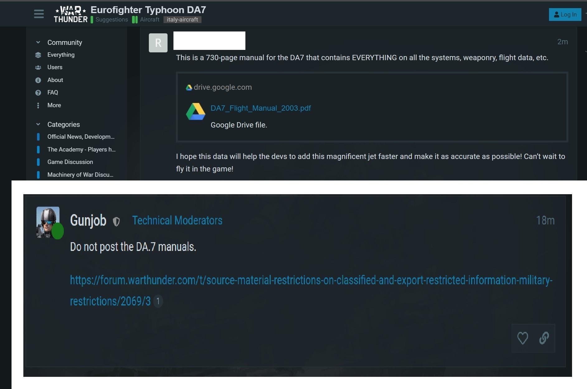 Время от времени подобные ситуации возникают на форуме War Thunder. Помимо Eurofighter Typhoon DA7 и упомянутого F/A-18 Hornet, геймеры публиковали секретную информацию о танках Leclerc и Challenger 2 наряду с гайдами по пилотированию истребителем F-16.