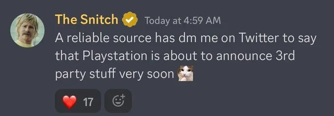 Инсайдер The Snitch, который не так давно заявил, что больше не будет сливать информацию об играх и мероприятиях, вновь вернулся и рассказал, что скоро будет представлена линейка игр для PlayStation от сторонних студий.