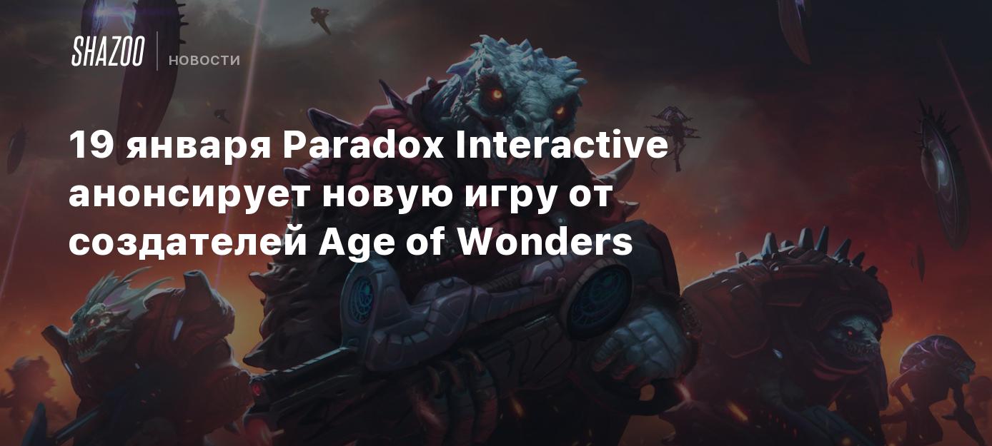 Paradox Interactive в своем твиттере рассказала, что 19 января в 20-00 по московскому времени анонсирует новую игру от дочерней студии Triumph. Датский коллектив известен сериями Age of Wonders и Overlord.