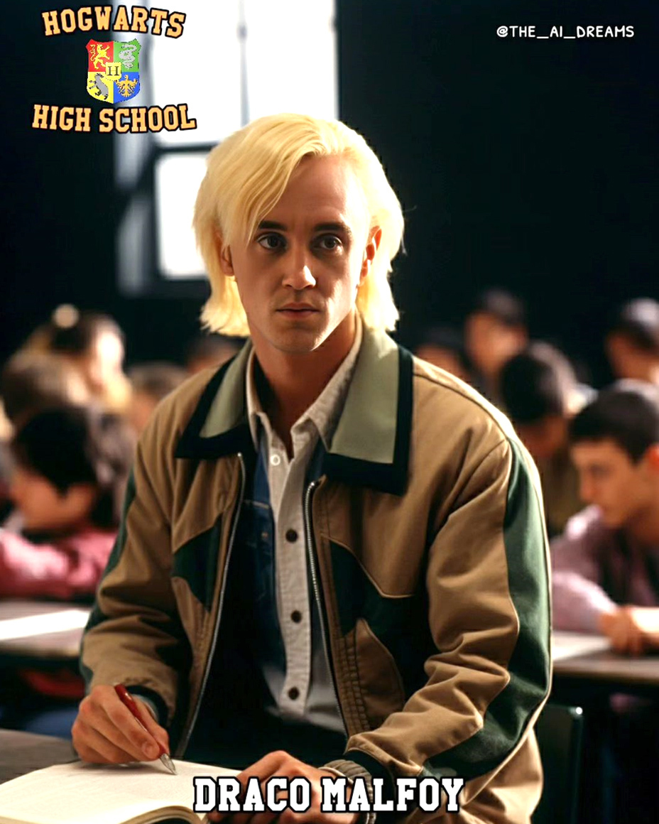 Помимо троицы главных героев на новых кадрах предстали и другие герои «Гарри Поттера». Например, Драко Малфой, Полумна Лавгуд и Седрик Диггори. Преподаватели магии и зельеварения из фильмов «Гарри Поттер», в свою очередь, оказались обычными учителями. Хагрид, к примеру, оказался преподавателем физкультуры, а Альбус Дамблдор, совершенно очевидно, предстал в виде директора. Также на новых кадрах засветилась и Беллатриса Лестрейндж, которая оказалась обычной уборщицей. Стоит отметить, что все представленные кадры с новым «Гарри Поттером» оказались фанатским творчеством. Ими поделился автор под ником the_ai_dreams.