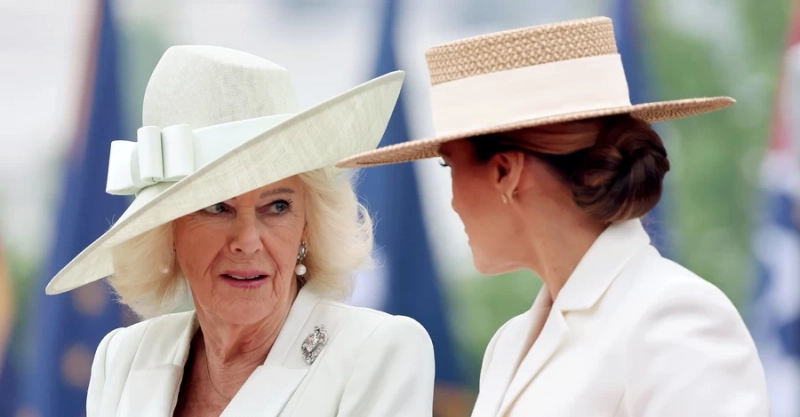 Фото: Getty Images Американские президентские супруги Дональд и Мелания Трамп приняли британского короля Чарльза и королеву Камиллу в Белом доме. Это второй день визита монархов в Великобританию. Королева и первая леди США выбрали похожие образы в светлых тонах. Мелания надела жакет и юбку от американского бренда Ralph Lauren, соломенную шляпу канотье от американского дизайнера Eric Javits и туфли от культового британского дома Manolo Blahnik. Камилла выбрала платье едва заметного зеленого оттенка и шляпку от ирландского модиста Филиппа Трейси, много лет разрабатывающего головные уборы для членов королевской семьи.