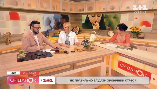 Ведущие утреннего шоу Руслан Сеничкин и Людмила Барбир получили разрешение на переедание от врача-диетолога Натальи Самойленко во время прямого эфира «Сніданку з 1+1».