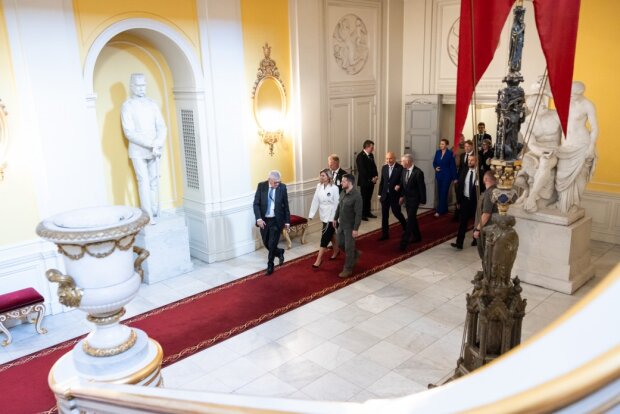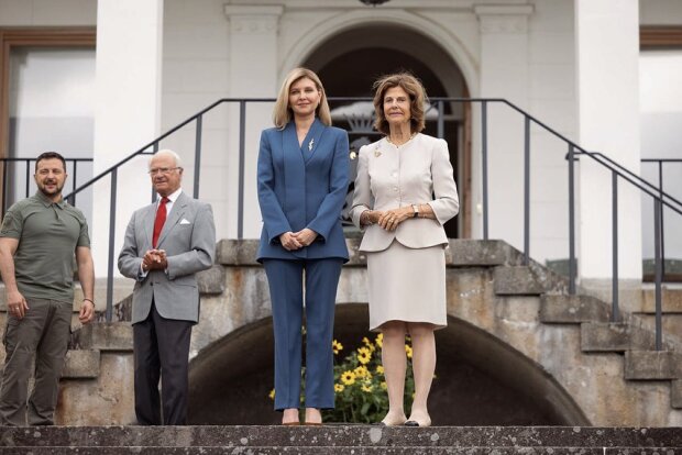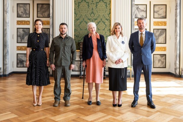 После визита в Швецию и Нидерланды первая леди Елена Зеленская и президент Украины Владимир Зеленский отправились в Данию, где у них должны были состояться несколько важных приемов, в том числе аудиенция с представителями королевской семьи. Мы уже успели рассказать о встрече украинской первой леди с невесткой царствующей королевы – кронпринцессой Мэри, на которой Елена появилась в модном брючном костюме молочного цвета, а теперь хотим рассказать о необычном образе, который Зеленская надела на аудиенцию с самой королевой Дании Маргрете II.