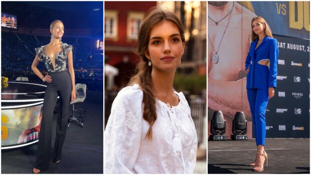 За время работы на канале спортивных новостей у молодой жены известного журналиста и путешественника Дмитрия Комарова – 25-летней Александры Кучеренко уже успела появится огромная армия поклонников, которые с нетерпением ждут ее появления в студии и на разных спортивных мероприятиях. Так, на днях Александра побывала в Польше, куда приехала, чтобы освещать поединок украинского боксера Александра Усика против британца Даниэля Дюбуа. Об этом журналистка рассказала в Instagram. Так, в микроблоге Кучеренко появились фотографии, которые были сделаны во время поездки. На одной из них девушка позирует в джинсах и вышиванке, затем появилась в стильном брючном костюме с пикантными вырезами по бокам, а вечером, на футбольном стадионе Тарчински Арена во Вроцлаве, где состоялся бой, жена Комарова блистала во всей красе в облегающих брюках и топе с вырезом до самого пупка. Дополнили образ аккуратная укладка и макияж.