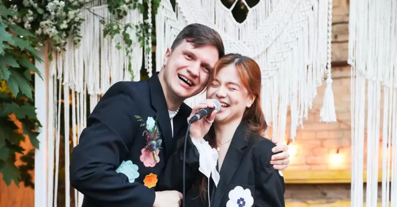 Фото: пресс-служба Tember Blanche Солисты группы Tember Blanche Александра Ганапольская и Владислав Лагода теперь официально муж и жена. 9 мая пара сыграла камерную свадьбу, пригласив на церемонию фанатов за донат на ПВО. По итогам “Свадебного сбора” артисты подарили поклонникам три парных приглашения, чтобы они разделили с ними особый момент. Кадры со свадьбы молодожены опубликовали в Instagram. Празднование прошло под открытым небом, площадку украсили коврами и фонариками. Для торжества возлюбленные создали парный образ из винтажных жакетов. Александра предстала в белом нежном платье, а ее избранник – в полосатых брюках. Ведущими церемонии были Александр Колмен и солист группы NAZVA Павел Гоц. Пара познакомилась в июле 2019 года. Тогда Александра наткнулась на играющего на гитаре Владислава и попросила спеть песню, а в сентябре они начали встречаться. В 2020 году они создали группу Tember Blanche. В феврале 2022-го артисты стали участниками Нацотбора на “Евровидение-2022”. Самые известные треки группы: “Вечорниці”, “Калуські вечорниці”, “Хороший хлопець”, “Встигнути до 30”.