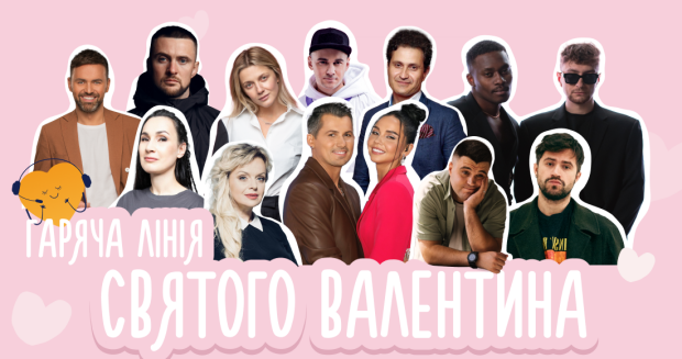 По случаю Дня влюбленных украинцы могут заказать аудиопоздравления для возлюбленных в исполнении любимых звезд. Голосами проекта “Горячая линия Святого Валентина” стали известные телезвезды. Среди них – Тимур Мирошниченко, Ахтем Сеитаблаев, YARMAK, группа TVORCHI, KOLA, Евгений Кот, Ирма Витовская-Ванца и многие другие.