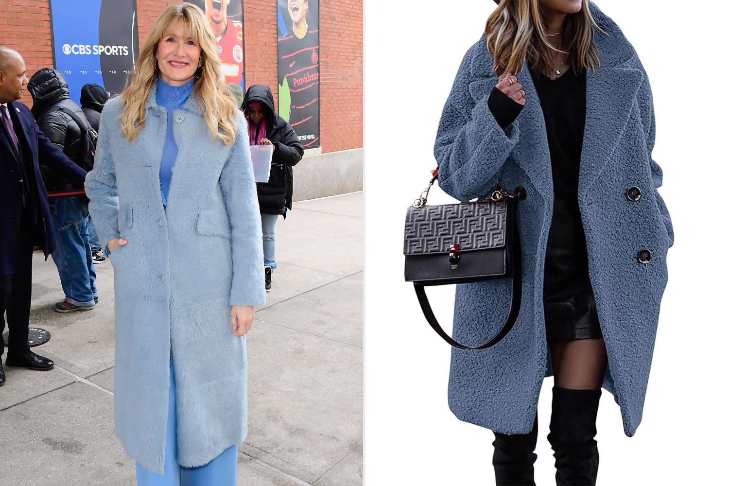 Дерн доказала, что можно носить на публике куртку-одеяло и при этом выглядеть изысканно. Мы нашли похожую версию, сделанную из искусственной овчины, чтобы вам было еще уютнее. Он также поставляется в эффектном синем цвете (похожем на цвет Dern), или вы можете сохранить его нейтральным с помощью черной версии.