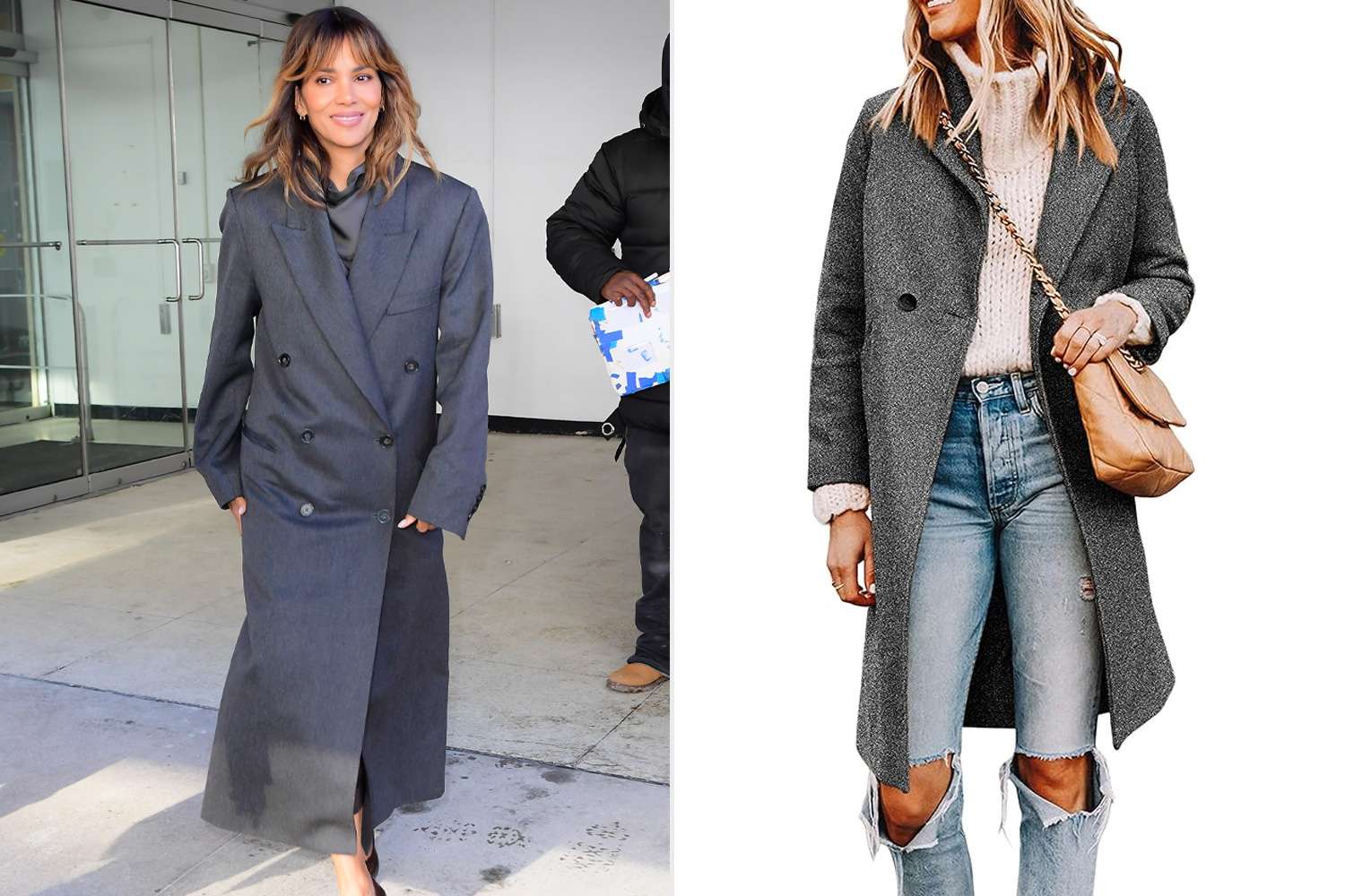 • Близко соответствует образу Холли Берри: Полушерстяной бушлат Tanming, 47 долларов США (исходный вариант: 60 долларов США)