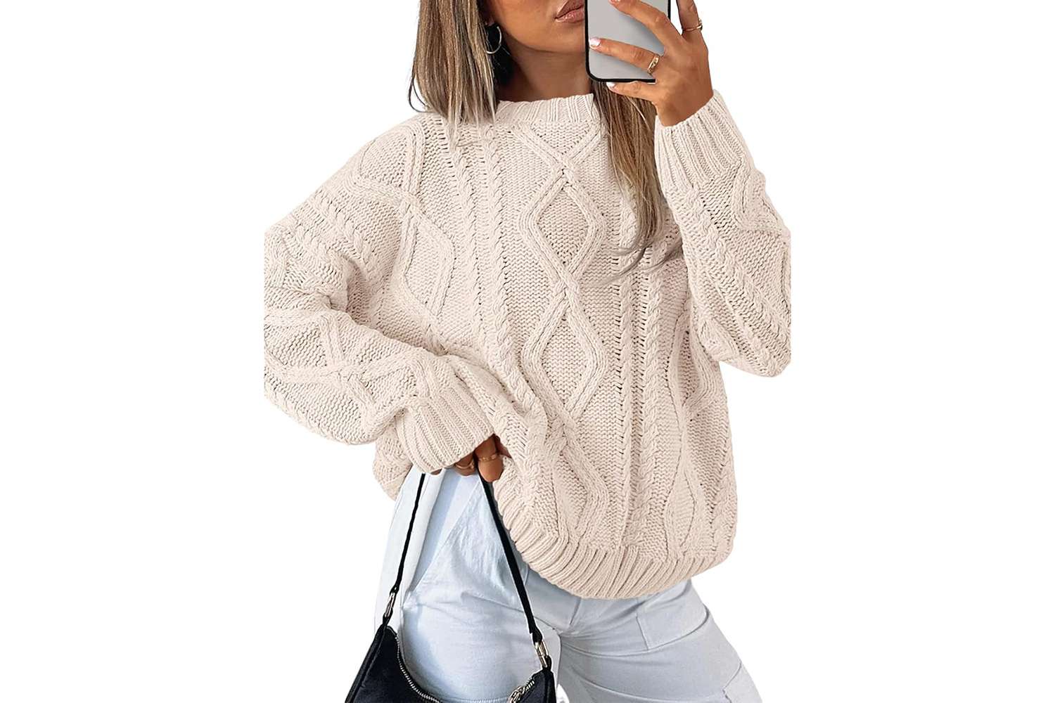 • Массивный вязаный свитер : модный свитер крупной вязки с круглым вырезом королевы, 38 долларов США (исходный вариант: 42 доллара США)