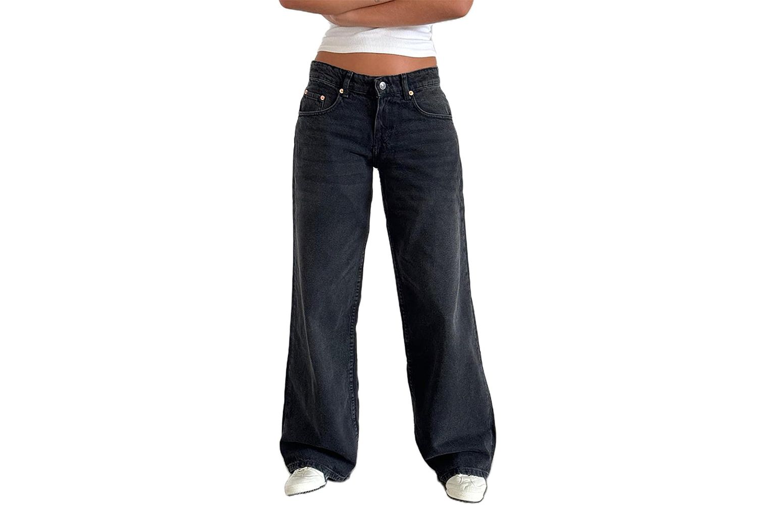 Эти мешковатые джинсы серовато-черного оттенка, просторной посадки и более длинной кромки, открывающей носки туфель, похожи на те, которые носил Мур. Они доступны в 18 других цветах, включая различные оттенки синего, и в размерах XS–XXXL.