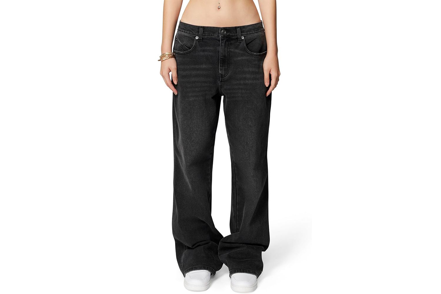 Возьмите страницу из книги стилей Джессики Альбы и соедините эти мешковатые джинсы с футболкой с напуском и белыми кроссовками для следующей поездки по делам. Они имеют заниженную талию, ширинку на молнии и пуговицах и пять карманов. Они представлены в различных оттенках черного, синего и серого цветов.
