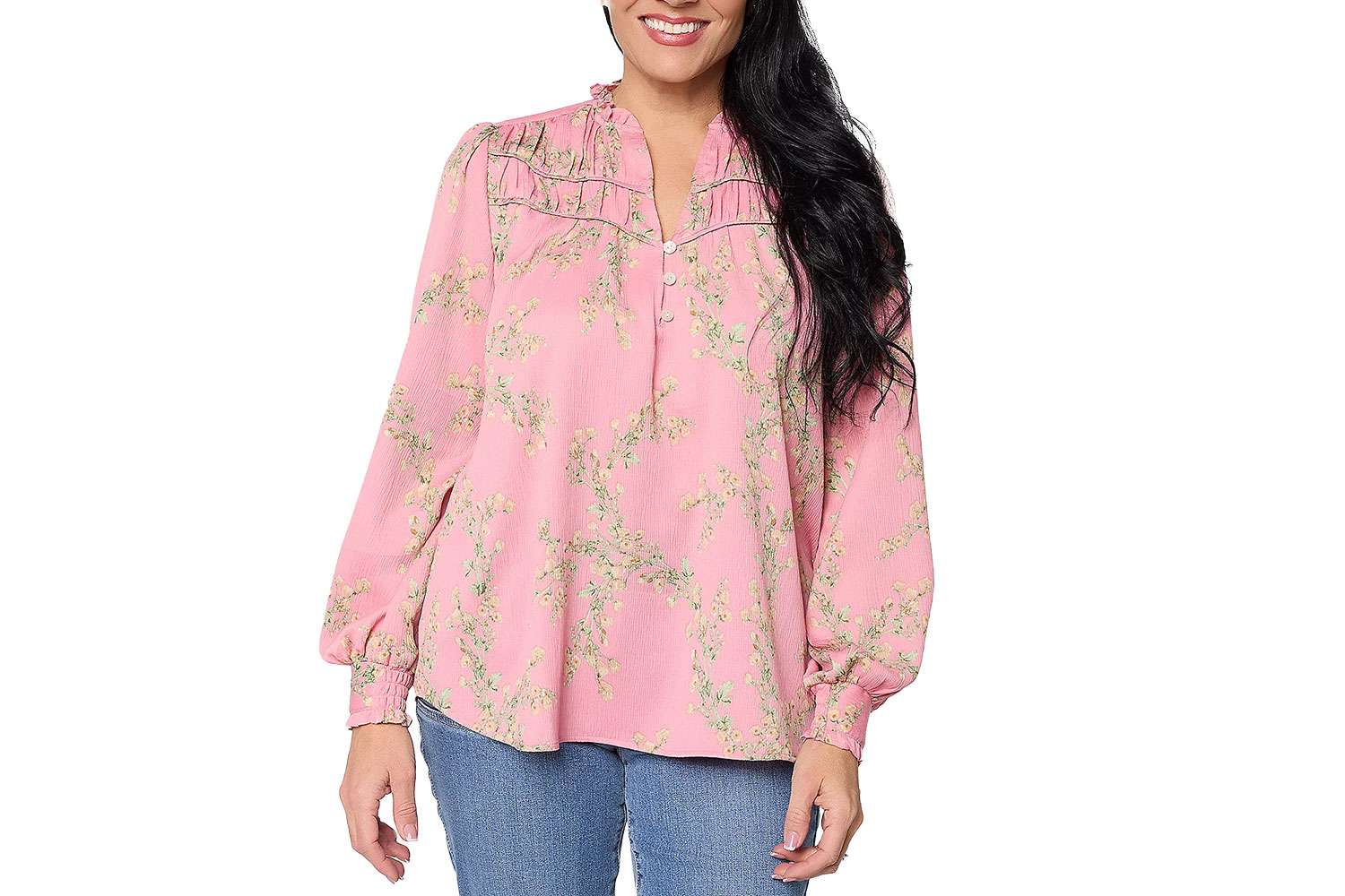 - Блузка с длинными рукавами и рюшами, 67 долларов США (оригинал 80 долларов США)