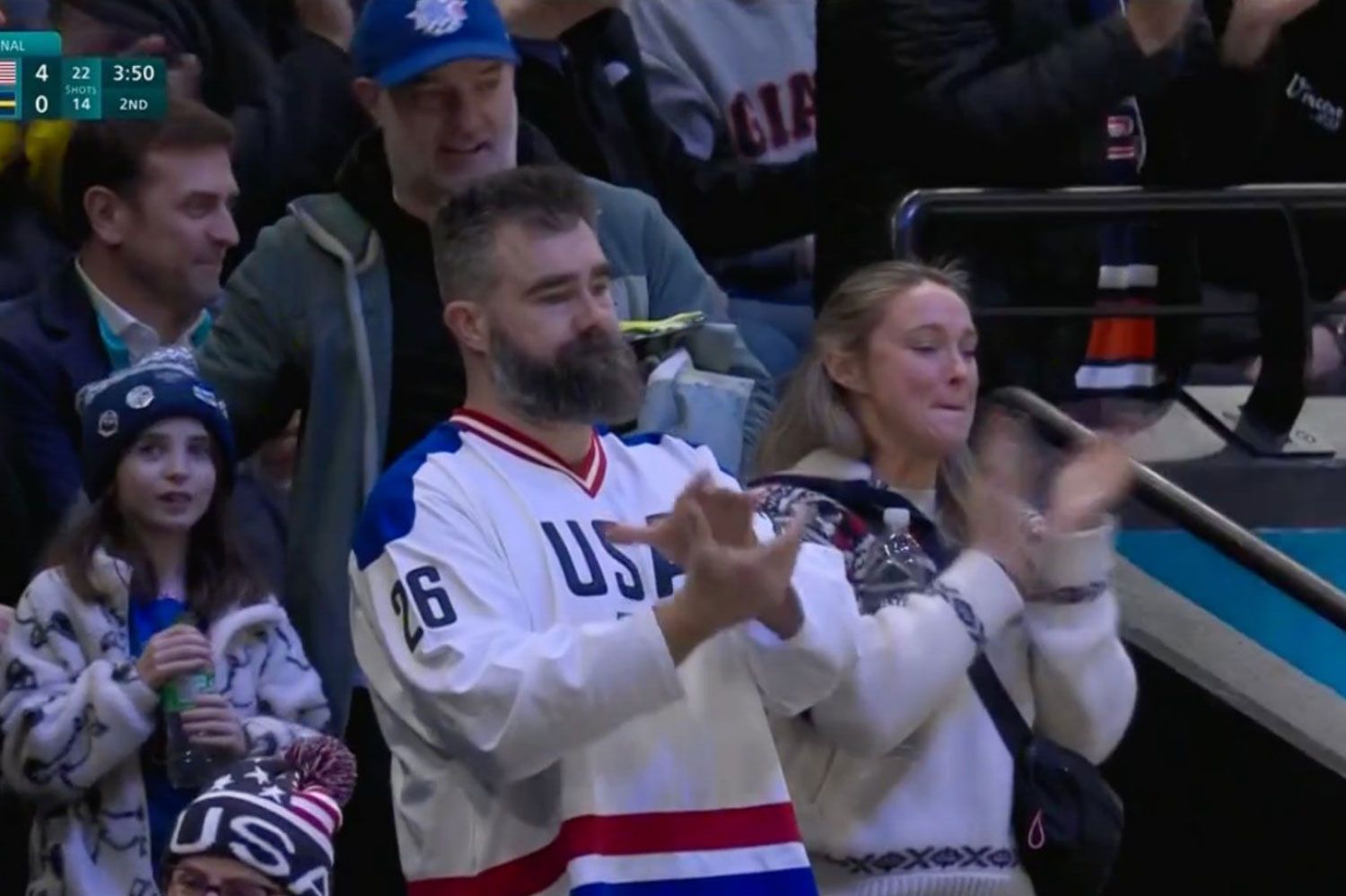 Джейсон и Кайли Келси приехали в Милан на зимние Олимпийские игры 2026 года! И их первая остановка? Наблюдаю, как женская хоккейная сборная США душит Швецию.