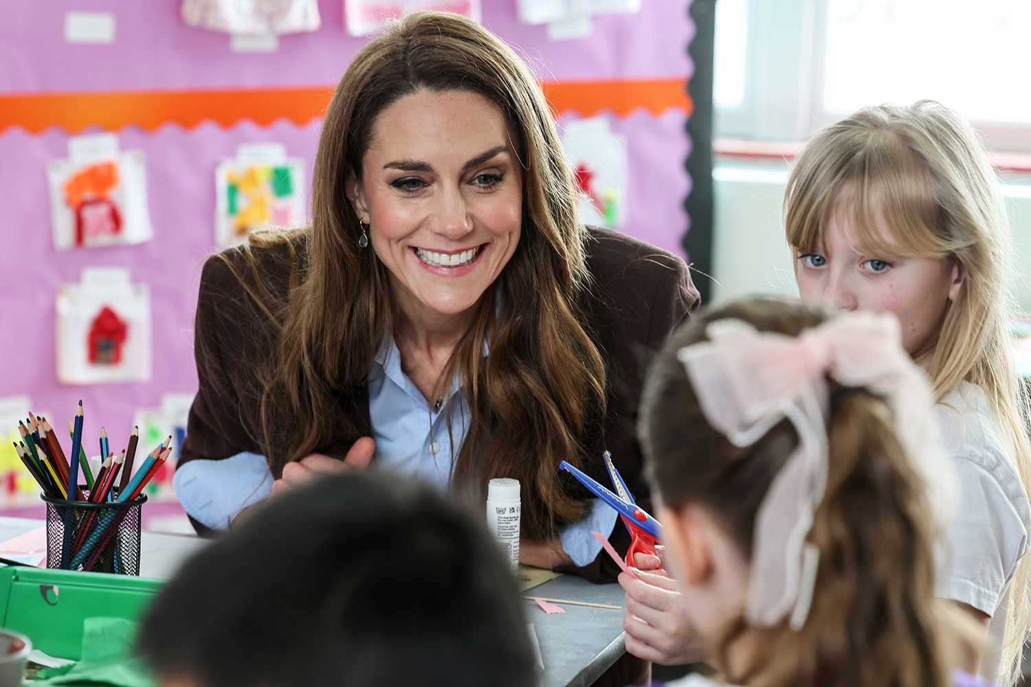 Жену принца Уильяма прозвали Детской принцессой за ее теплое отношение к детям, и в школе она, казалось, была в своей стихии. Там она посетила игровую площадку на открытом воздухе для детей раннего возраста, познакомилась с родителями, которые воспользовались поддержкой Place2Be, и присоединилась к работе студентов в Художественной студии, где она рассказала о своих собственных детях.