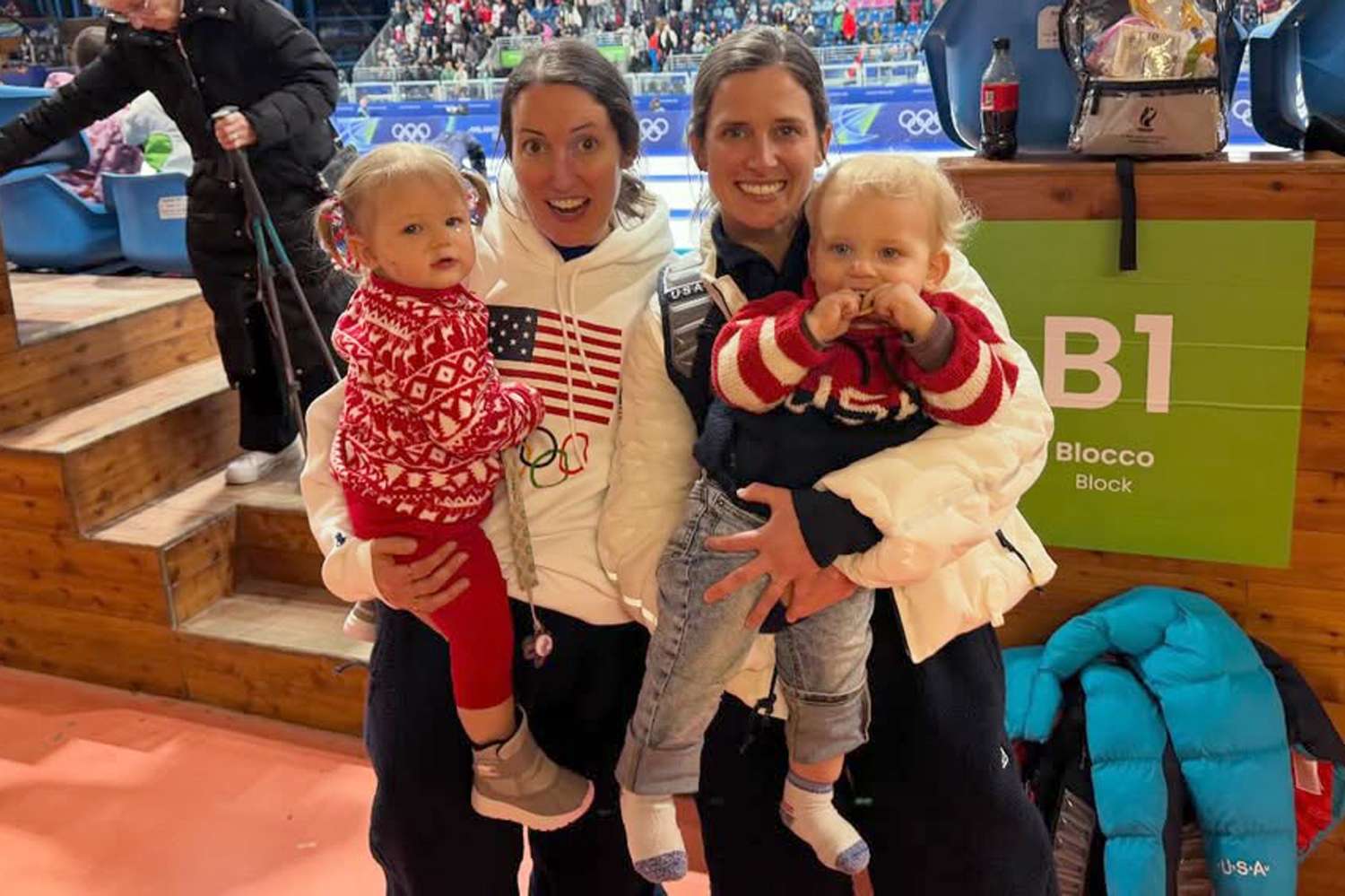 Сестры из Миннесоты также входят в одну команду по керлингу, и их дети привнесли энергию двоюродных братьев на трибуны, пока их мамы соревновались. (С пятницы они будут бороться за бронзу.)