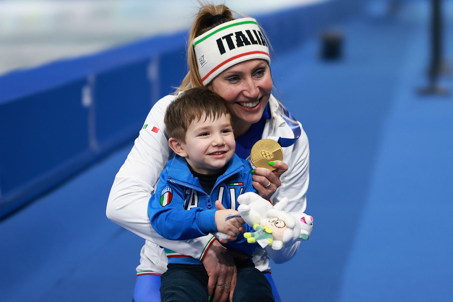 Франческа Лоллобриджида из Италии поделилась своей рекордной золотой медалью со своим двухлетним сыном Томмазо, который позже прервал ее интервью после гонки в клипе, который с тех пор собрал 3,5 миллиона просмотров на X.