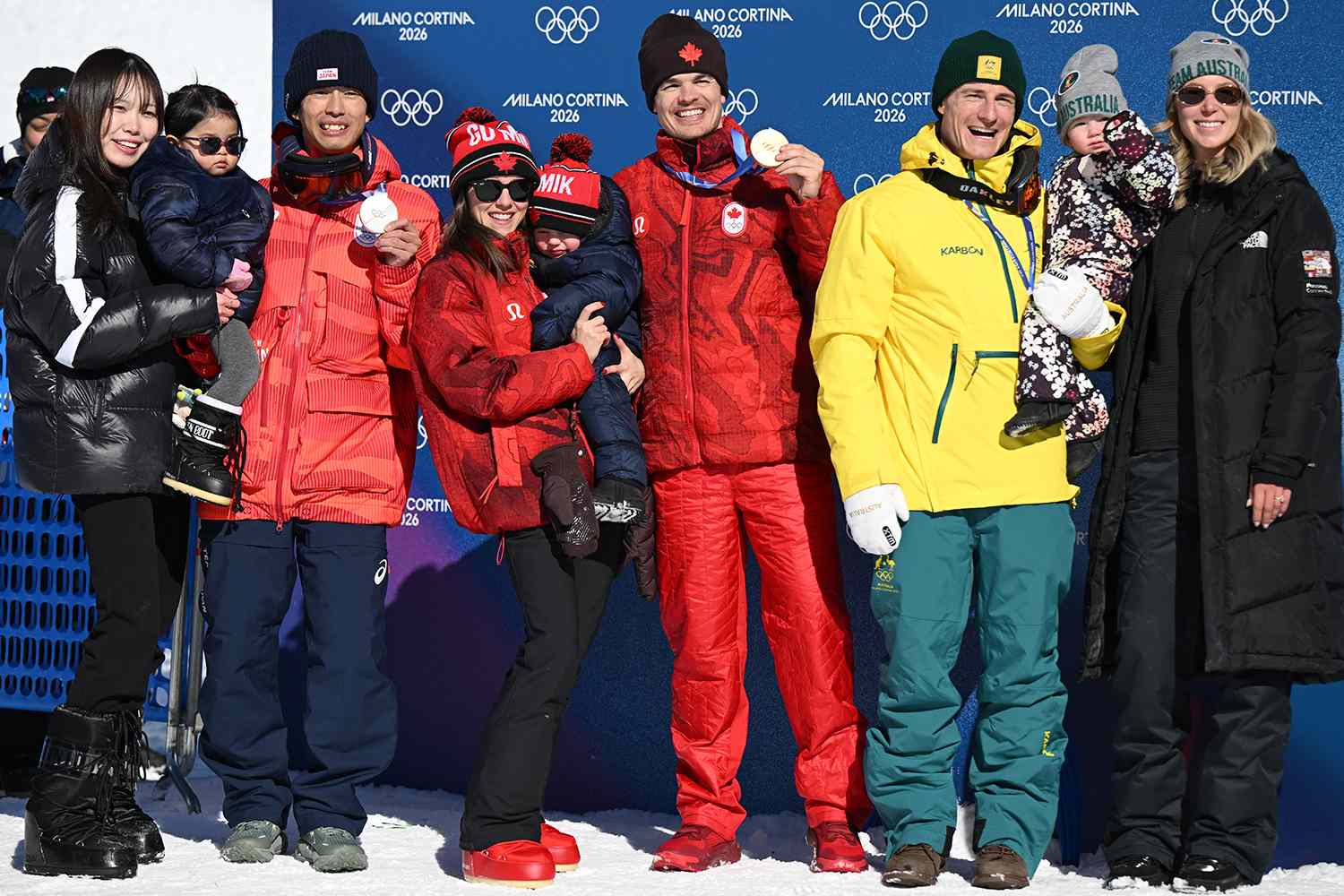 На подиуме соревнований по парному магнату среди мужчин стояли три отца: Микаэль Кингсбери из Канады, Икума Хоришима из Японии и Мэтт Грэм из Австралии. Медалисты собрались для группового фото со своими малышами и партнерами.