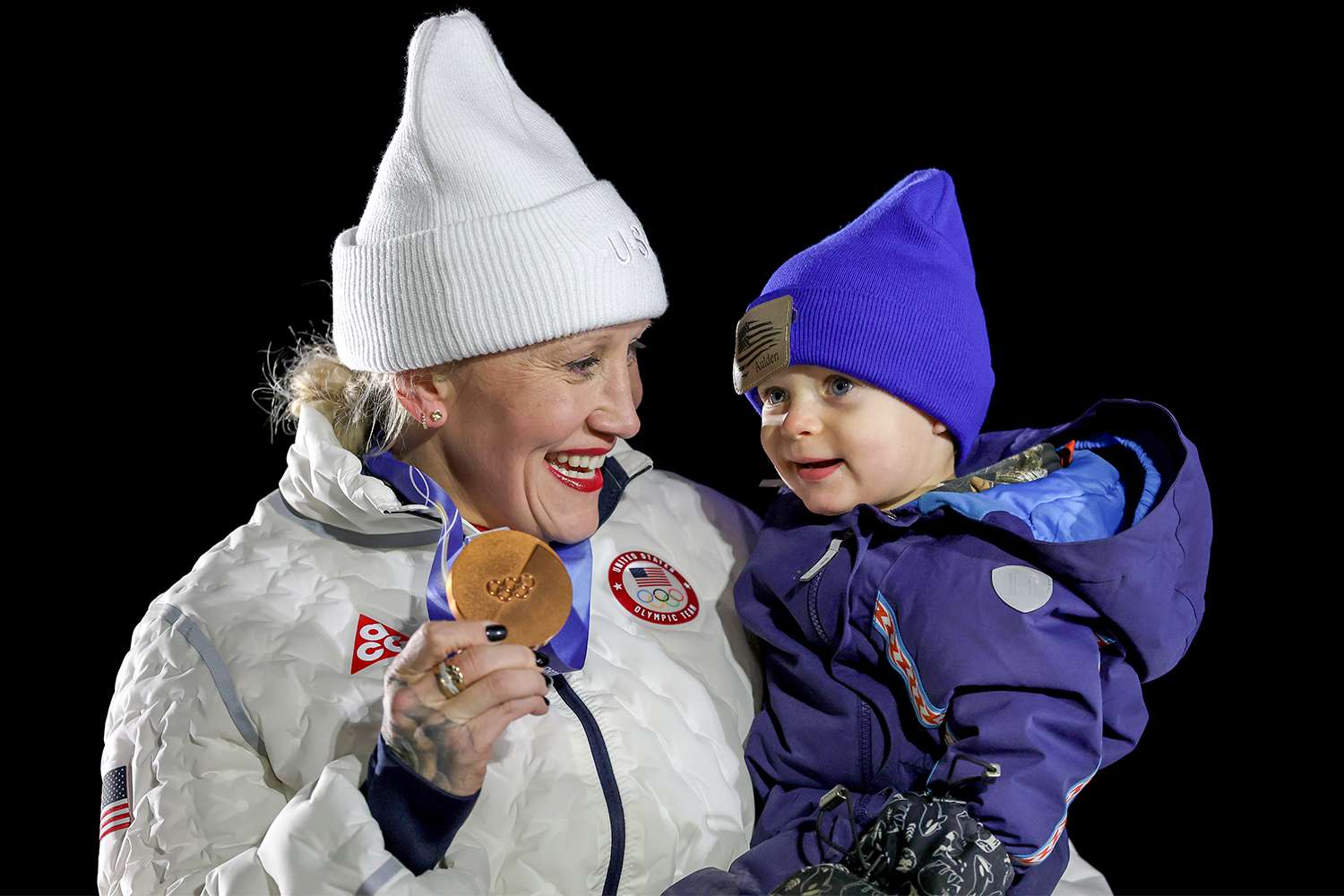 Бобслеистка по сборной США Кейли Хамфрис, коллега Мейерс Тейлор, также взяла с собой 20-месячного сына Олдена, чтобы отпраздновать ее бронзовую медаль.