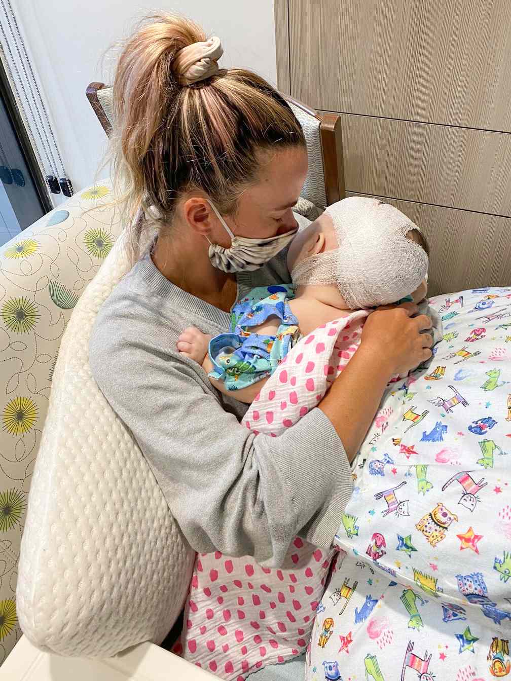 Тедди Мелленкамп и Дав после того, как Дав перенесла нейрохирургию в 2020 году.