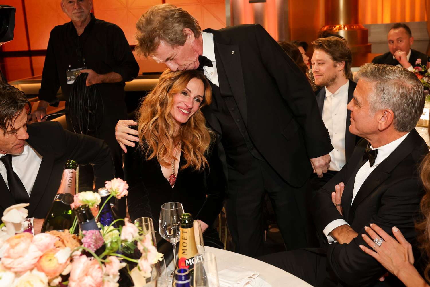 Мартин Шорт нежно целует Джулию Робертс' как с гордостью смотрит Джордж Клуни.