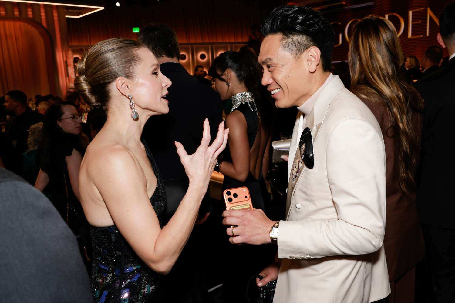 Кристен Белл беседует с Джоном М. Чиу во время перерыва в шоу.