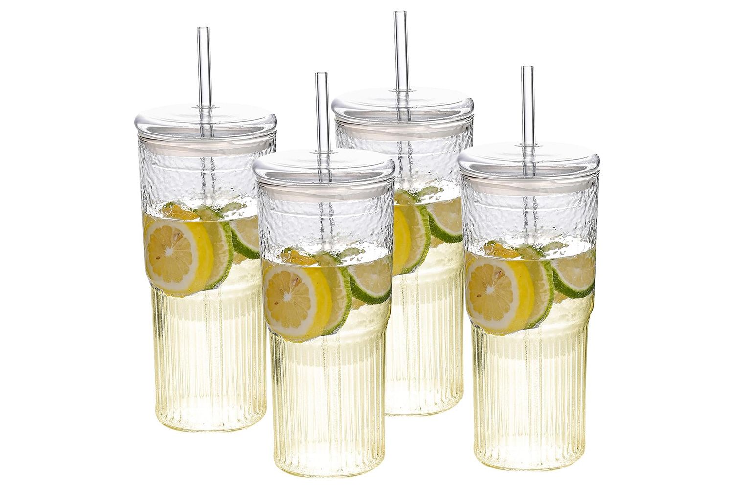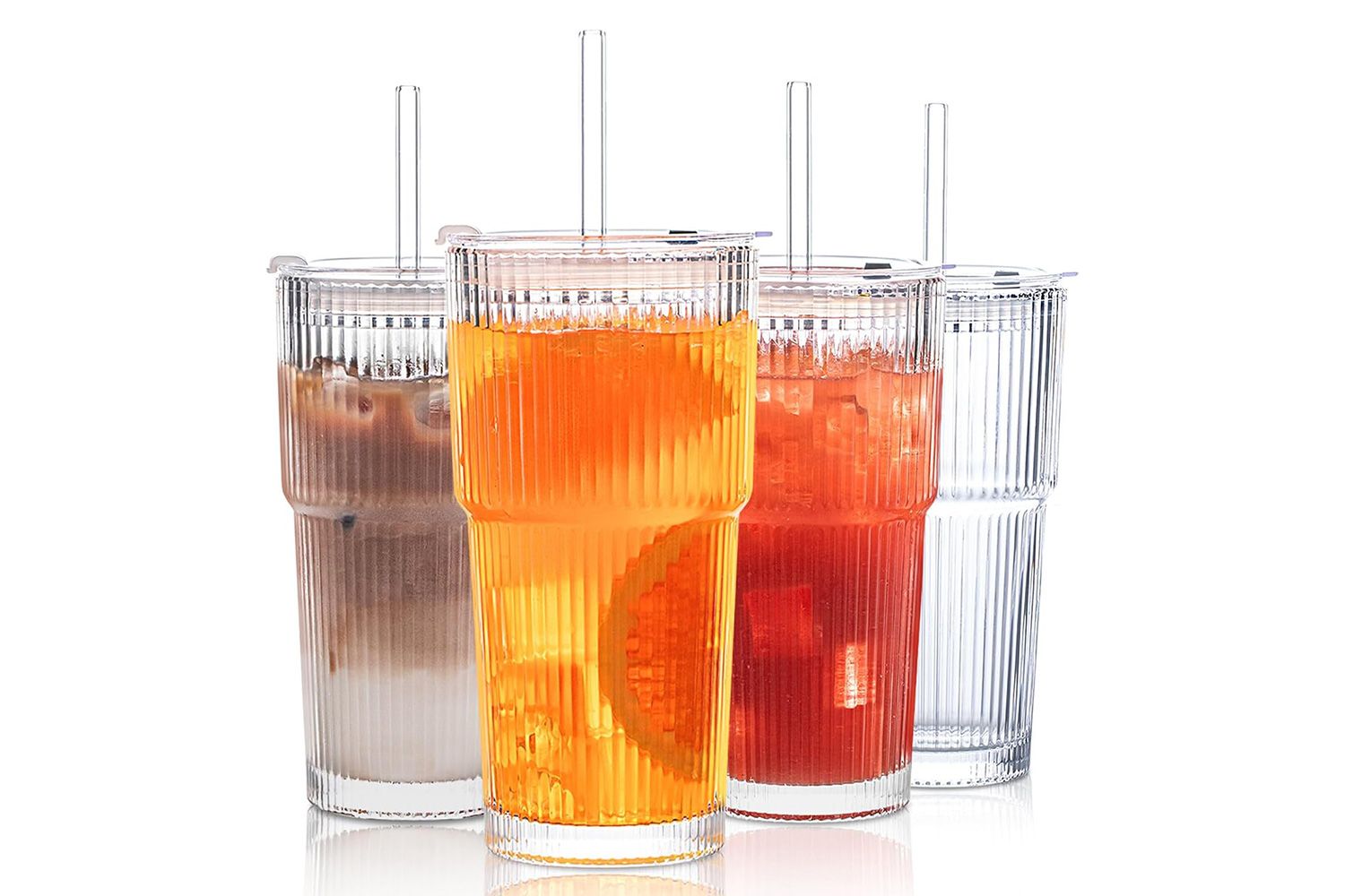 Стеклянные стаканы Insetlan с ребристыми краями, крышками и стеклянными трубочками, набор из 4 шт.