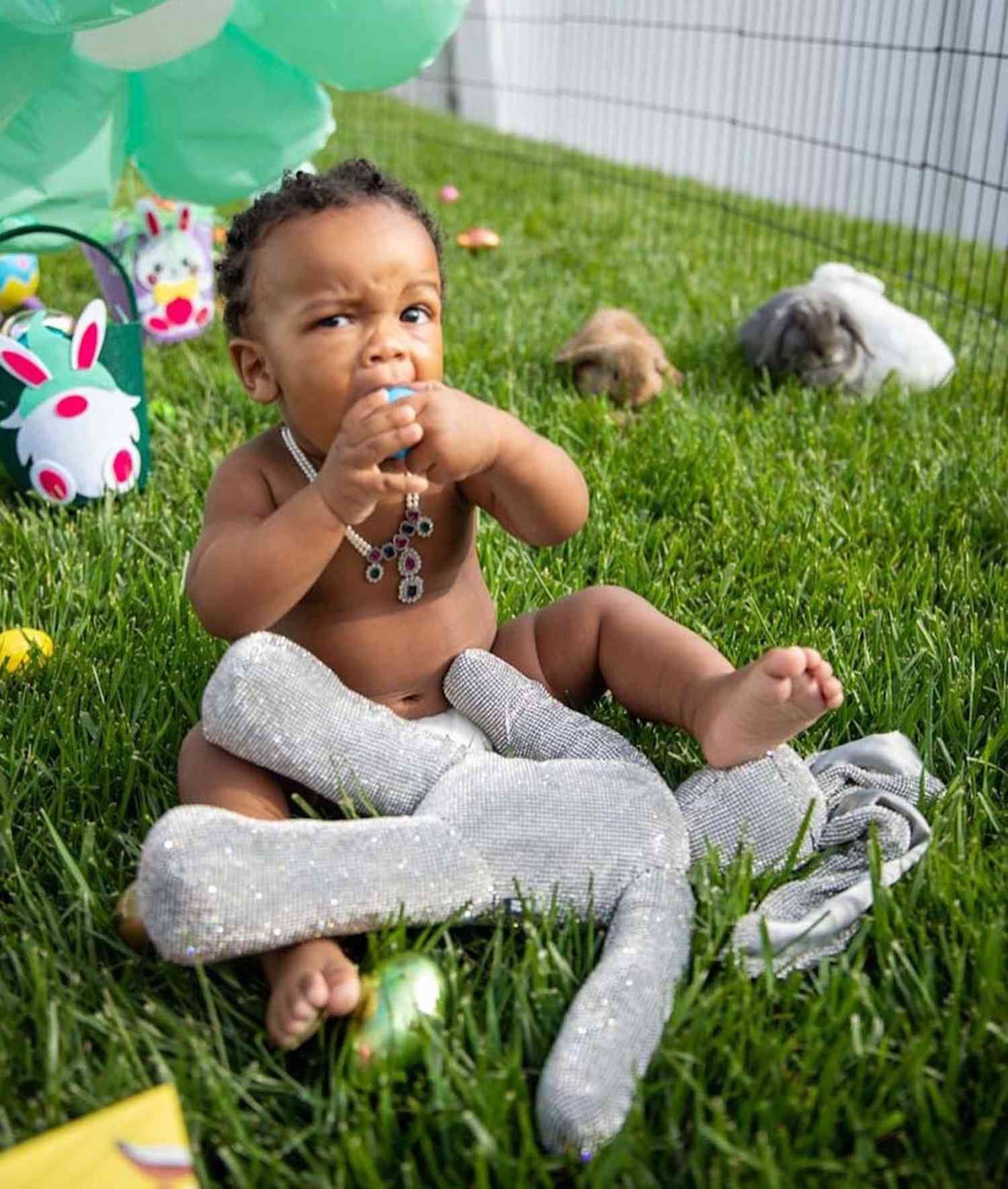 В том же месяце Рианна опубликовала две подборки фотографий с первой Пасхи своего сына. «Посмотри, хеееее!!!!» она написала.