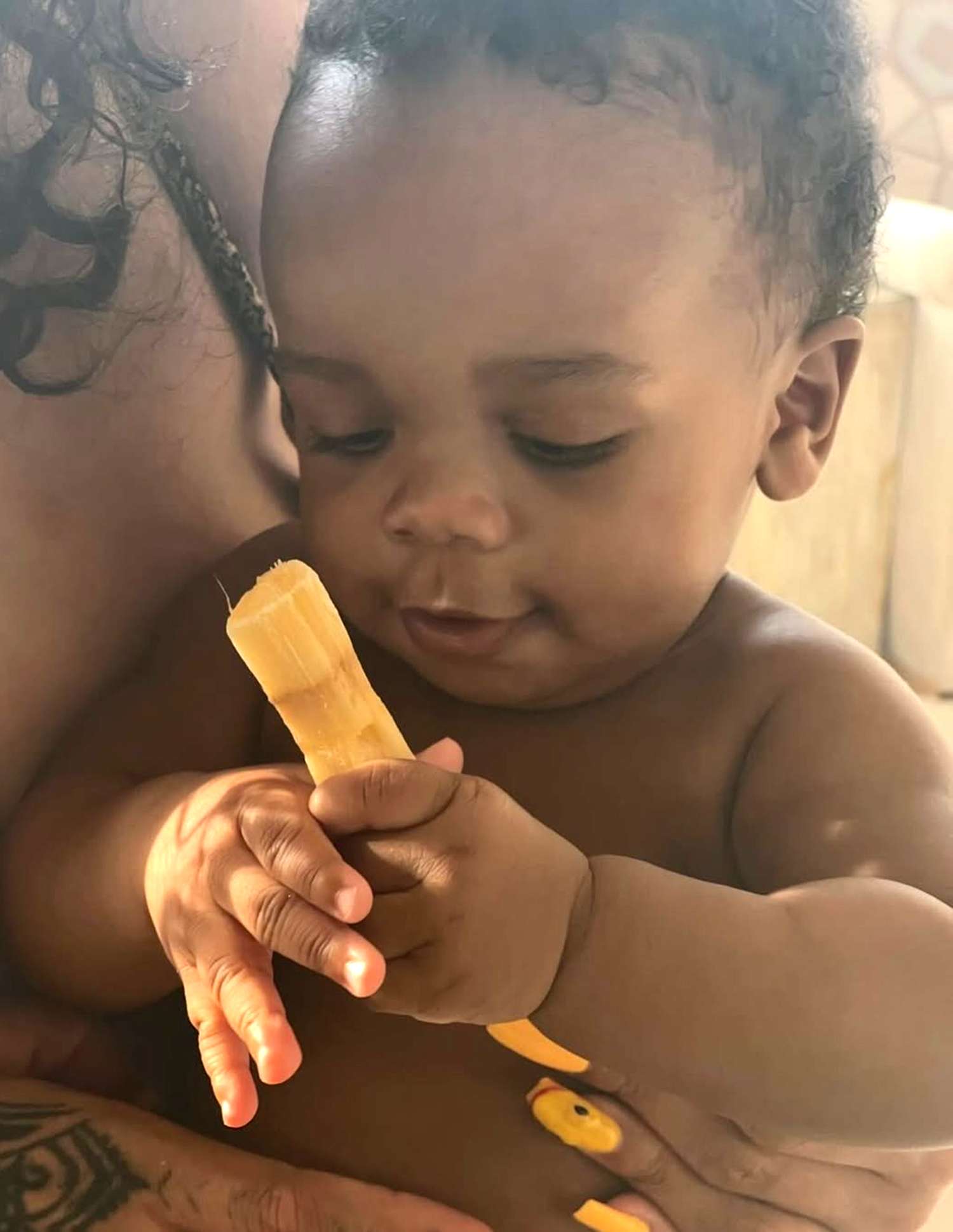 В свой пост она также включила фотографию крупным планом своего малыша, наслаждающегося сладким лакомством на руках у матери.