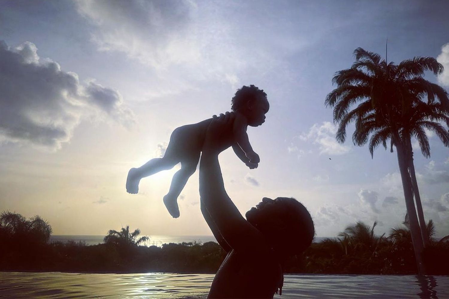 Во время посещения своего родного Барбадоса Рианна запечатлела идеальный момент отпуска, когда A$AP подняли в небо свою малышку RZA. «Мой баджанский мальчик…🇧🇧❤️», — подписала снимок силуэта отца и сына певица.