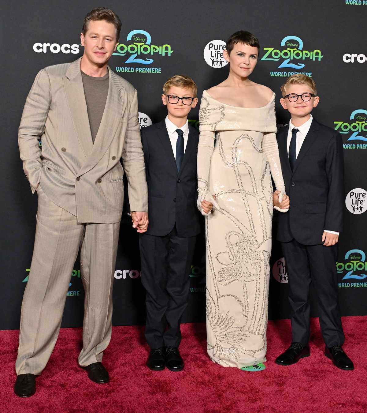 Джиннифер Гудвин с мужем Джошем Далласом и их сыновьями Оливером и Хьюго на премьере фильма «Зверополис 2» в ноябре 2025 года.