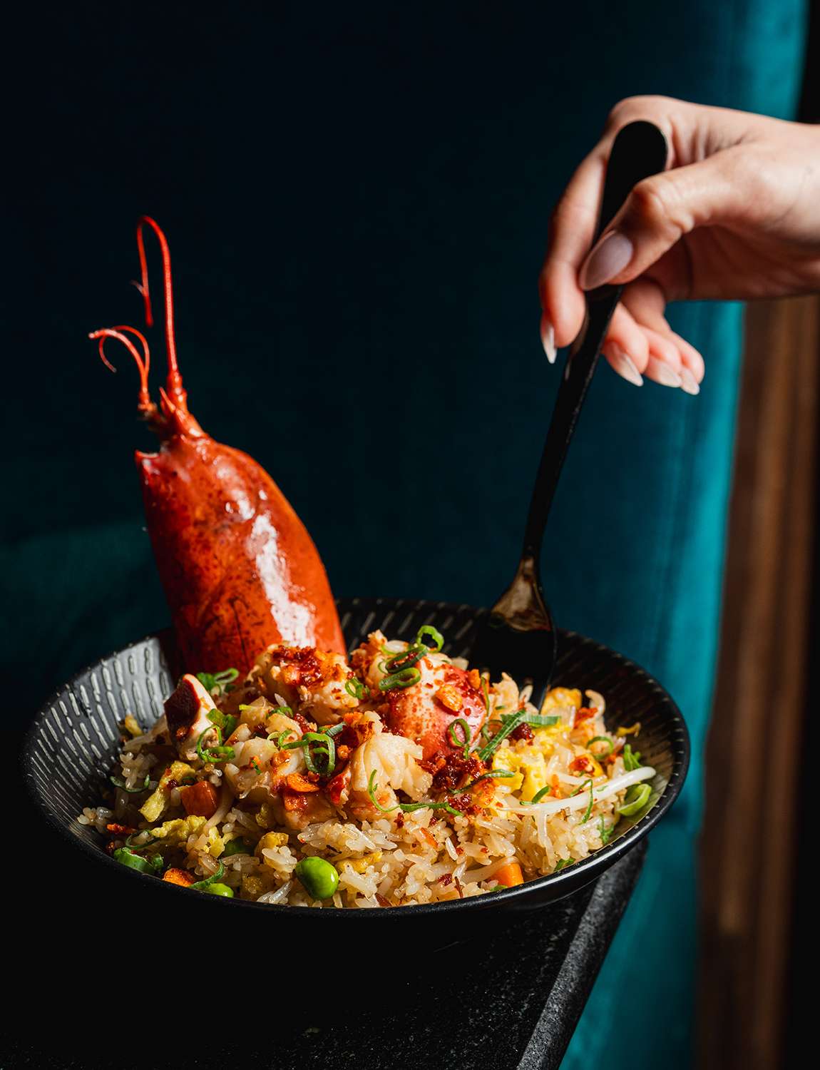Соус XO с умами сочетается с мясом лобстера, обжаренным в воке с рисом таманишики и овощами.