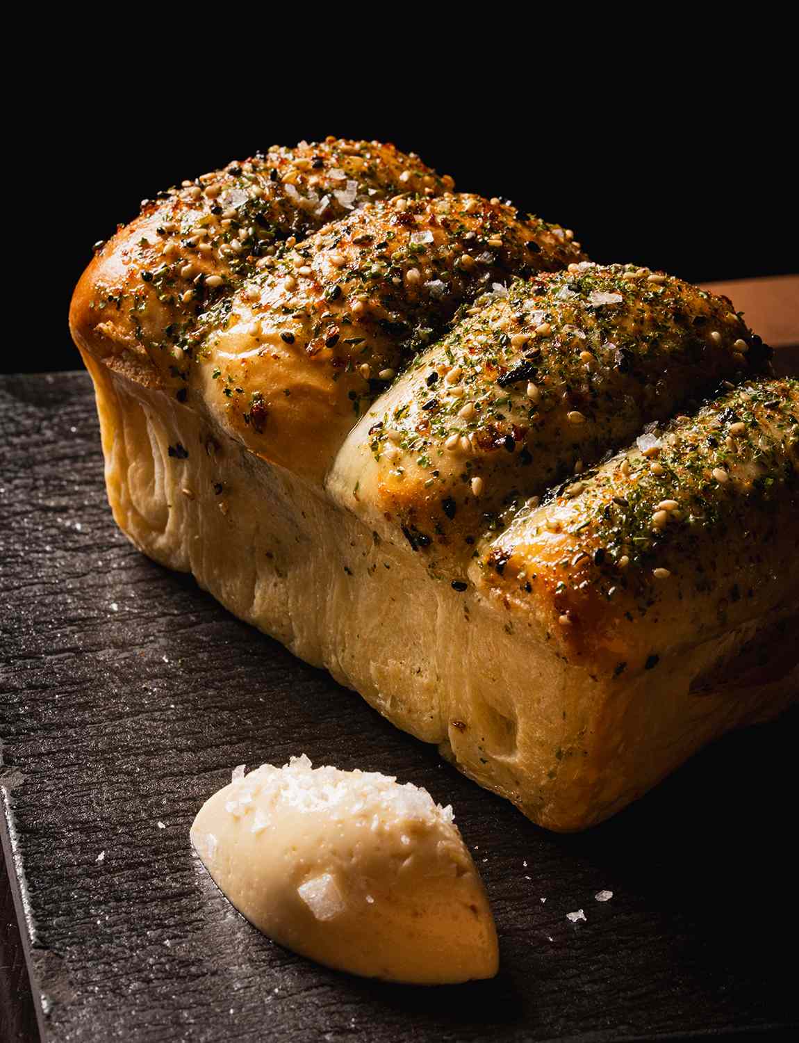 Обязательно намажьте этот мягкий хлеб, покрытый слоями нори и фурикаке, маслом мисо Сайкё, с которым он подается.