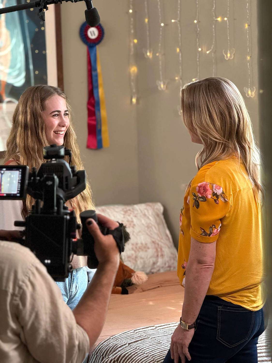 Элисон и Меган Суини за кулисами фильма «Роман на ранчо Хоуп».