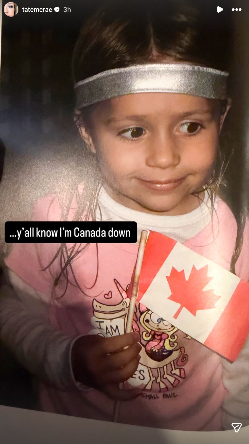 Макрей успокоила своих канадских поклонников, поделившись своей детской фотографией с мини-канадским флагом в Instagram Stories в среду, 4 февраля. В подписи она написала: «…вы все знаете, что я в Канаде».